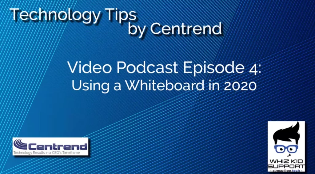 https://www.youtube.com/watch?v=dyyB-OWr3So Technology Tips by Centrend Podcast: Episode 4 I love working with a whiteboard. In fact, I can think of no technique more effective for brainstorming a project than getting a team of folks to share ideas in front of a whiteboard. In 2020, we are forced out of the office, but the need for project collaboration and groupthink doesn’t stop. Enter the digital whiteboard. A powerful team collaboration tool that lets you collaborate with up to 50 participants that can be located anywhere in the world. For this walkthrough, I’ll be showing you Google’s Jamboard. There are other tools, but this one is one of my favorites, and to get started, all you need is a Google account. Go to jamboard.google.com. If you’ve used Jamboard already, your previous jams will be listed. If you’ve never used Jamboard or want to start a new jam, click the + sign in the bottom right corner. Experiment with the drawing tools on the left side. For example, select the pen tool and freehand draw shapes: You can then use things like the Text Tool to draw text on the whiteboard – either stand-alone or on shapes you’ve already drawn. You can also click the underlined A at the top bar to select a font color for the typed text. You can freehand draw shapes, just like on a real whiteboard. If you make a mistake, you can use either the eraser tool or the undo button to undo the last action. Here’s a really handy tip for you. If you want to draw a straight line, you can hold the shift key as you draw. Who needs a steady hand with this technology? You can type text, then rotate that text by clicking and holding on the top left of the text box. With the text rotated, you can still reposition it anywhere on the canvas. One of my favorite things about Jamboard vs. other whiteboard apps is the built-in image searchability. Instead of having to go to the internet in a new browser tab, find an image, save that image somewhere, go back to Jamboard, and import the image (remembering where you had saved it), you can do all this right inside Jamboard in just a couple clicks! First, click the Image Icon, then click the Google Image Search tab. This lets you search in the browser. Click the image you like and then click Insert. The jam is private until you share it. Sharing it unlocks the real power of this collaborative tool. To share, click Share in the top right. Then enter the email address of whom you’d like to invite. You can have them View only if you are presenting, or make them an editor if you want them to add and change the drawing. In the example below, I’ve added a technical consultant from Whiz Kid Support, our residential division of Centrend, to add the remote user part to our diagram. As they add elements, you will see their icon and initial appear. Usually, you would be on a video conference or at least a phone call while doing this, but you don’t have to be. You can have multiple pages on the whiteboard. To get a new whiteboard in the same file, click the arrow to the right of the whiteboard page marker in the top center of the screen: You can also click the shape icon and draw perfect shapes. Like this: Finally, the laser pointer is great for presenting ideas and talking about specific whiteboard areas in detail. You select the bottom tool from the left side toolbar, and then you can use this laser pointer effect to draw attention to an area of the whiteboard without actually drawing on it: The jam board software works on almost any internet-connected device such as an iPad or Android tablet or phone. On touch-enabled devices, you can draw on the device to draw on the board, and everyone will see your changes! As you can see, a digital whiteboard is a powerful, practical tool for team collaboration. There’s also a physical jam board for when you have some collaborators on-premises while working with remote team members at the same time. You can learn more about the physical jam board by clicking here. If you need help deploying this technology in your organization, please reach out for a free consultation. We can offer equipment, training, and consulting on many whiteboard solutions.